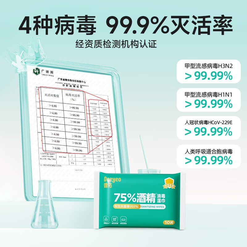 德佑酒精消毒湿巾10抽*10包 75%酒精便携湿纸巾 杀菌率99.9% 医护级