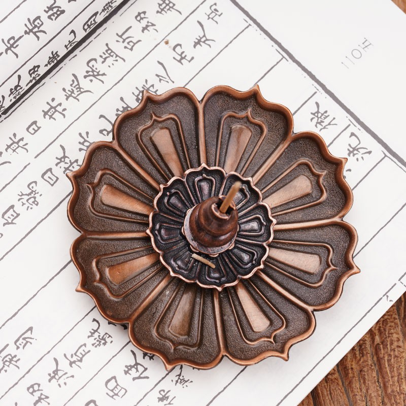 普云 莲花三宝铜合金香盘 三件套组香盘 香插适用盘香粗细款线香塔香 莲花三宝铜合金香盘