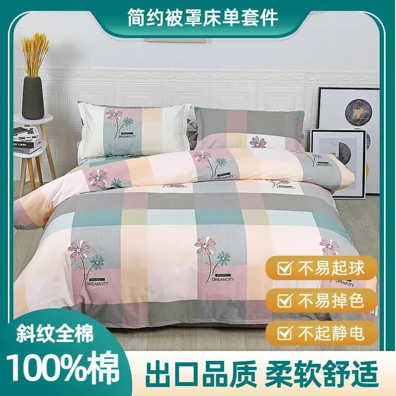 舒炫100%纯棉被套学生宿舍枕套简约格子条纹被罩单件全棉斜纹卧室 时尚英伦格【双面全棉】 三件套【床单1.6*2.3+枕套2】