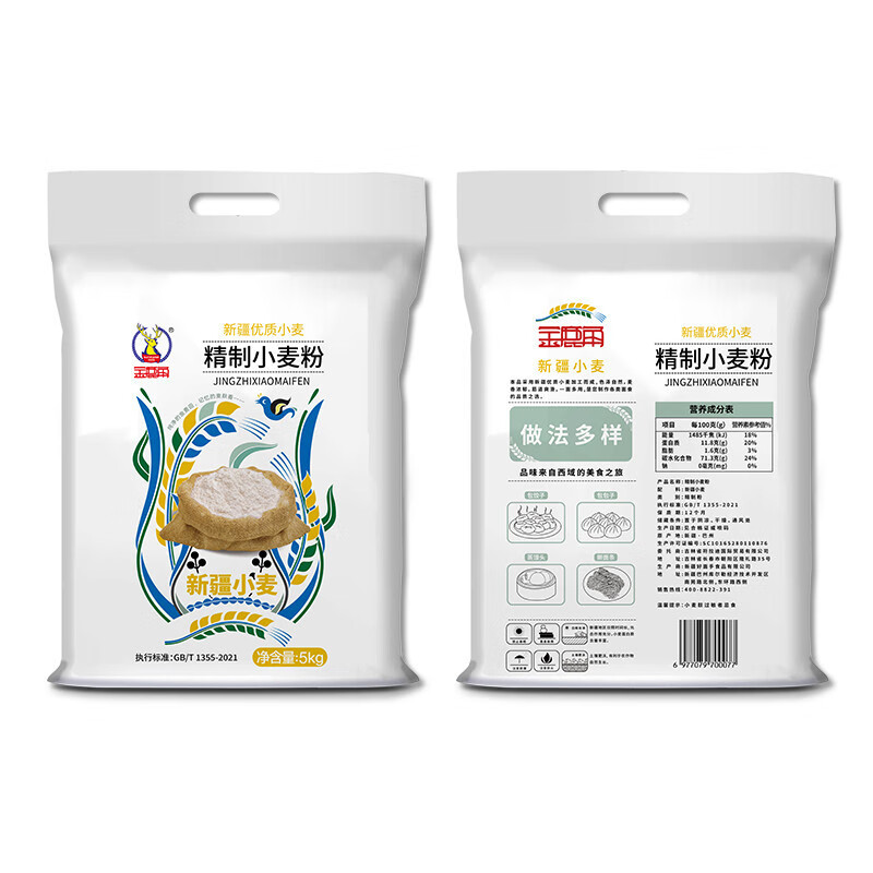 可局金鹿角新疆面粉精制小麦粉含麦芯0添加剂中高筋家用新国标饺子粉 20斤(10斤一袋*2)