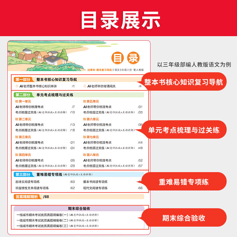 王朝霞过课本期末复习导航上册2025秋季小学一二三四五六年级期末真题卷语文数学英语人教版北师苏教单元试卷期末考前冲刺100分验收卷 语文(部编人教版) 三年级上册