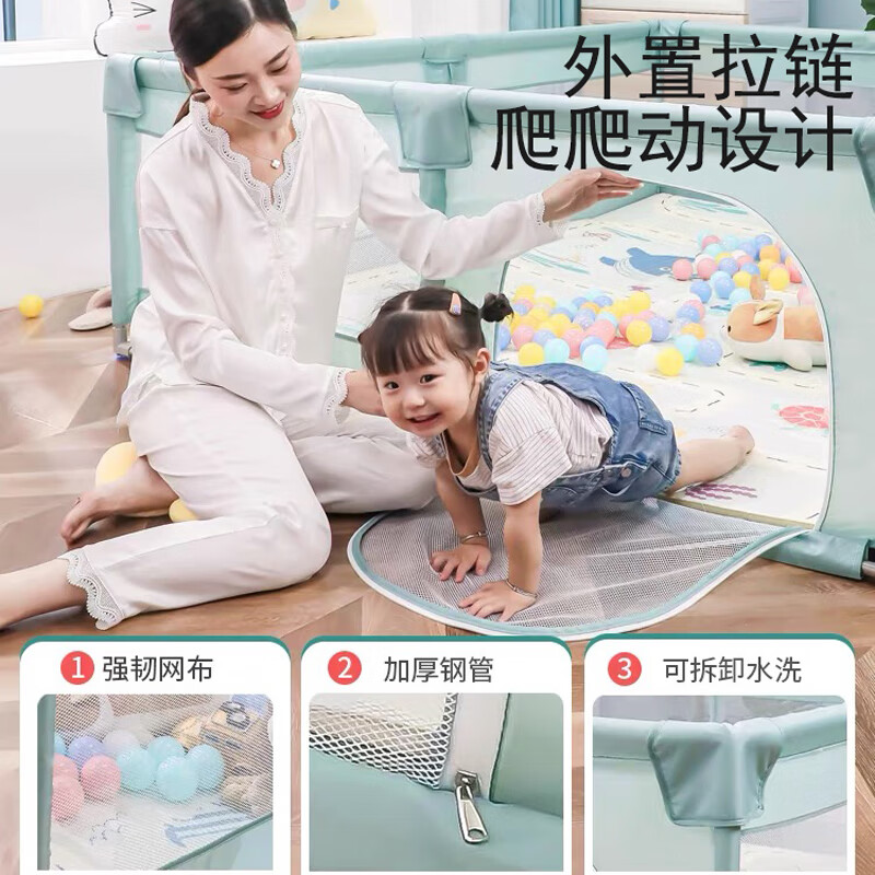 宝之轩围栏婴儿地上爬爬垫宝宝客厅防护栏儿童带爬行垫游戏家用室内乐园 1cm爬行垫+围栏(1.8*1.5m)+60球