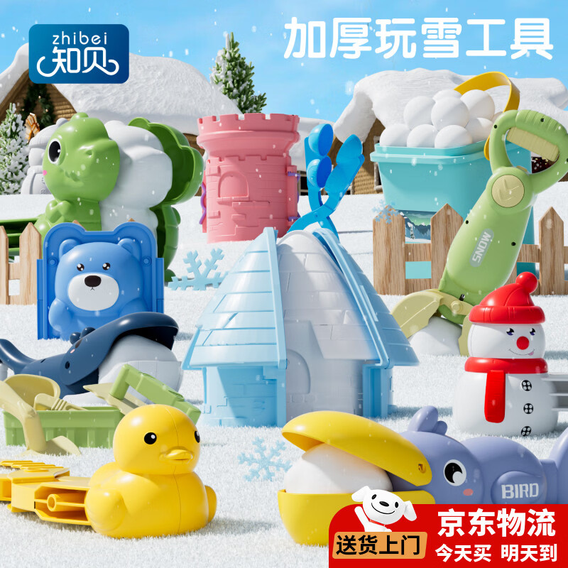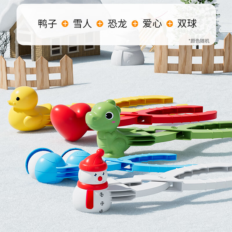 知贝儿童雪球夹子玩具玩雪工具冬天夹雪神器小鸭子雪人模具打雪仗装备 【实惠大号五件套】鸭子+雪人+恐龙+爱心+双球