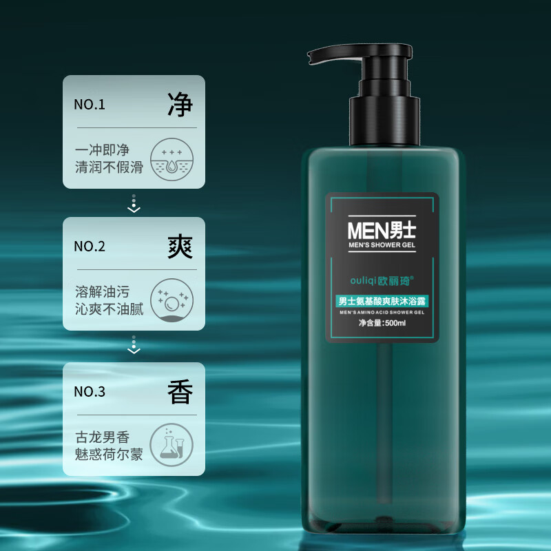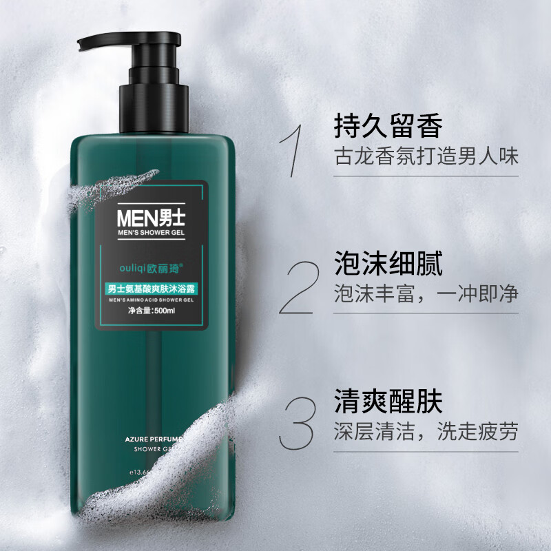 欧丽琦男士氨基酸爽肤沐浴露香味持久止痒控油香水型沐浴乳液洗沐套装 沐浴露 古龙香型 500ml 1瓶