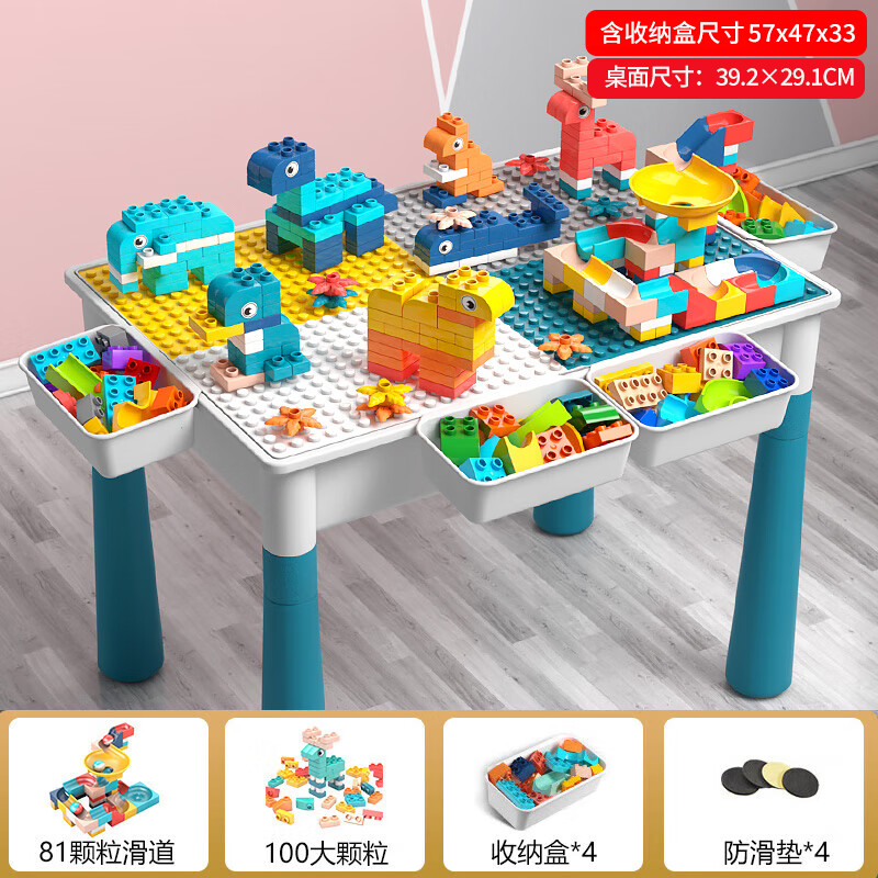 乐凑(L)积木桌1-3-6-12岁可啃咬结实多功能儿童大号大颗粒学习桌二合一 长方桌0椅+100颗粒+81滑道+4收纳