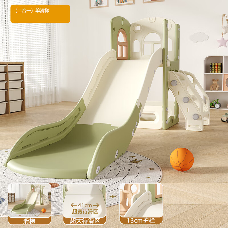 顽乐熊儿童滑滑梯秋千组合室内攀爬架加高折叠加厚组合安全环保游乐场 小神童绿色二合一【单滑梯加大加宽】