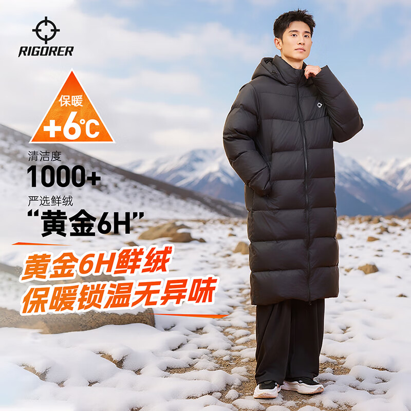 准者运动羽绒服男冬季长款户外保暖加厚鸭绒黑色运动休闲连帽情侣外套 纯正黑 【Z125311328】 2XL (185)