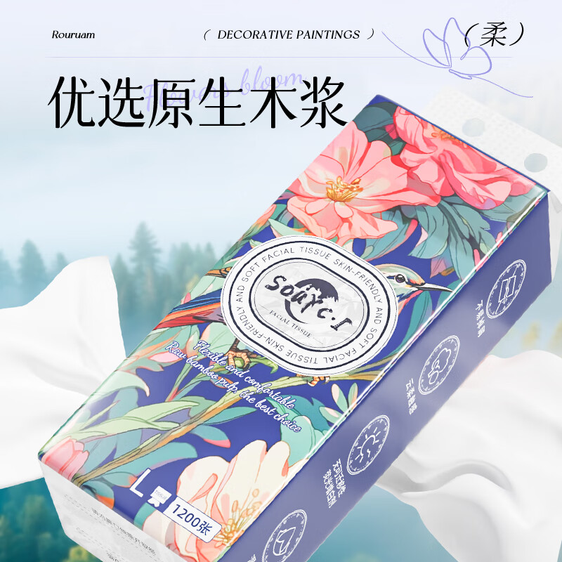 蓝漂悬挂式抽取卫生纸家用壁挂纸巾厕所抽纸 1200张*3提
