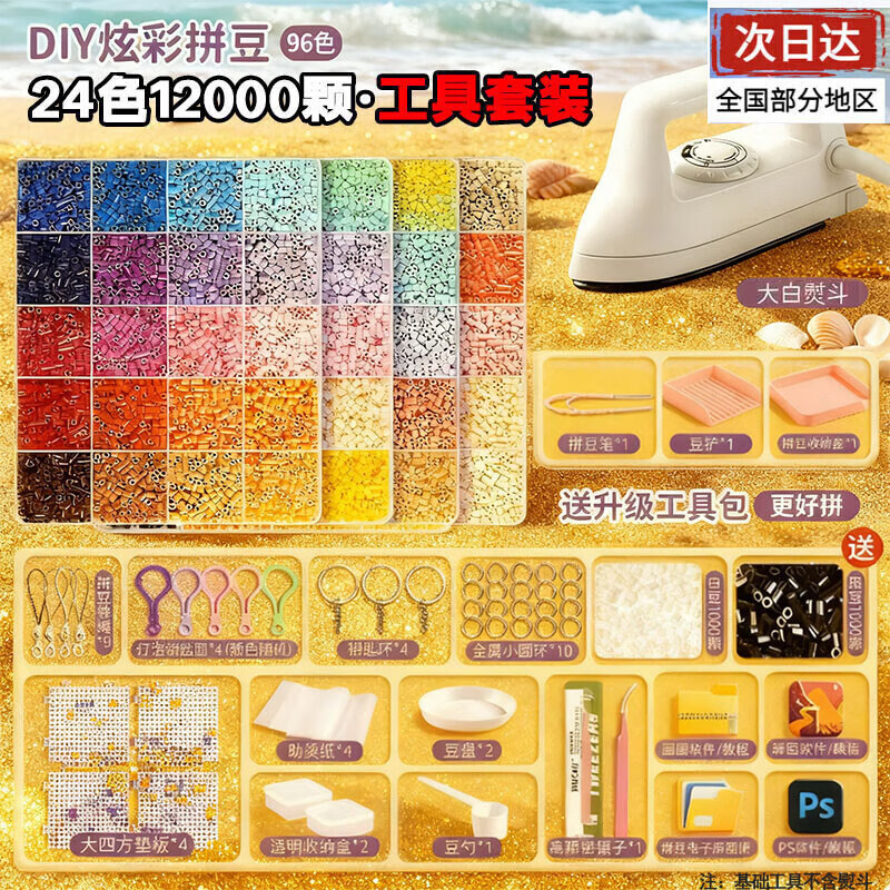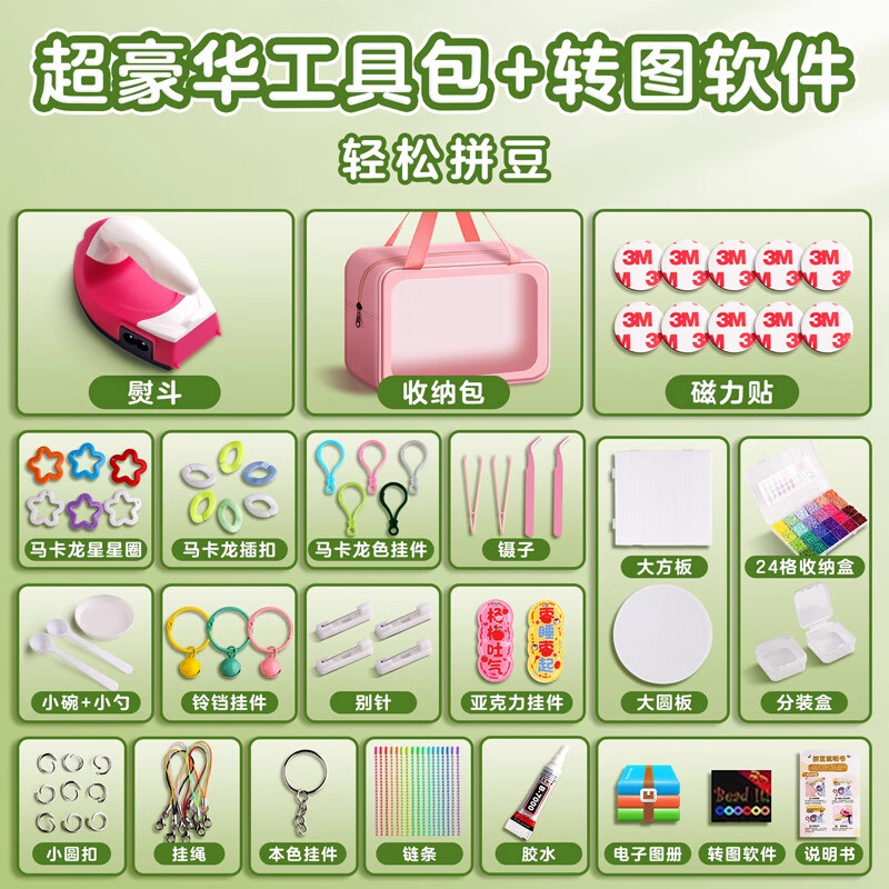 卡之物语拼豆豆手工diy套装拼豆全套收纳盒补充材料包2.6mm融合玩具熨斗女 【24色】12000颗豆+27件基础工具