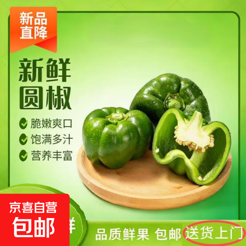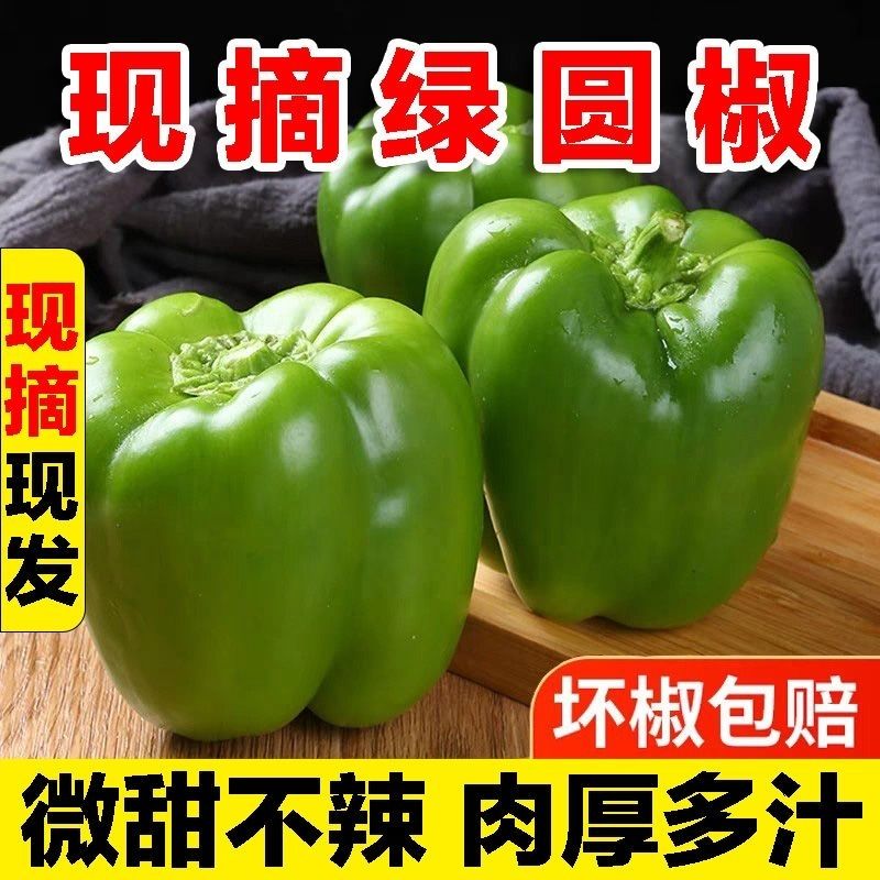 新鲜精品山东圆椒甜椒青椒灯笼椒蔬菜现摘菜椒太空椒辣椒超市批发 新鲜圆椒1斤【带箱】