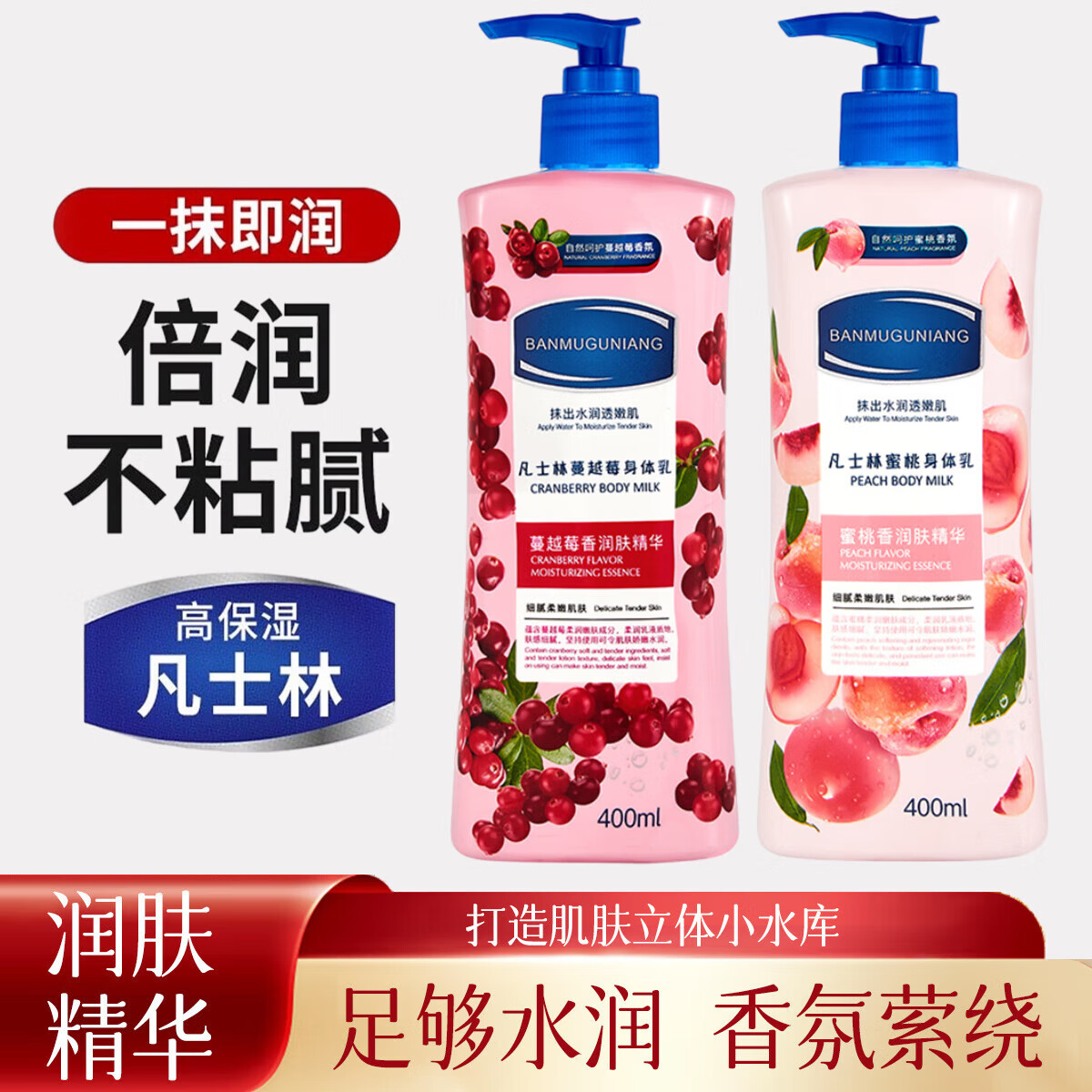 身体乳润肤露保湿润肤霜持久留香全身烟酰胺秋四季男女 【蜜桃】400ml+【蔓越莓】400ml