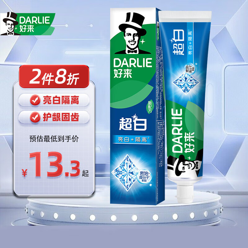 好来原黑人牙膏多效护理超白小苏打茶倍健牙渍黄清新口气护齿防蛀牙膏 超白中国190g