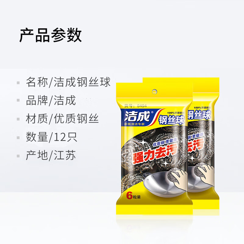 洁成 金属钢丝球洗碗不锈钢清洁球家用不易掉丝 6粒装*1包
