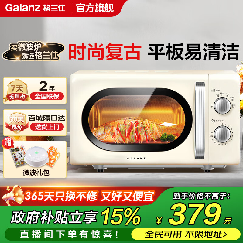 格兰仕【国家补贴】微波炉家用复古奶油风高颜值20升智能多功能一体机平板易清洁速热杀菌旋钮式小型KJ 复古高颜值平板 家庭优选
