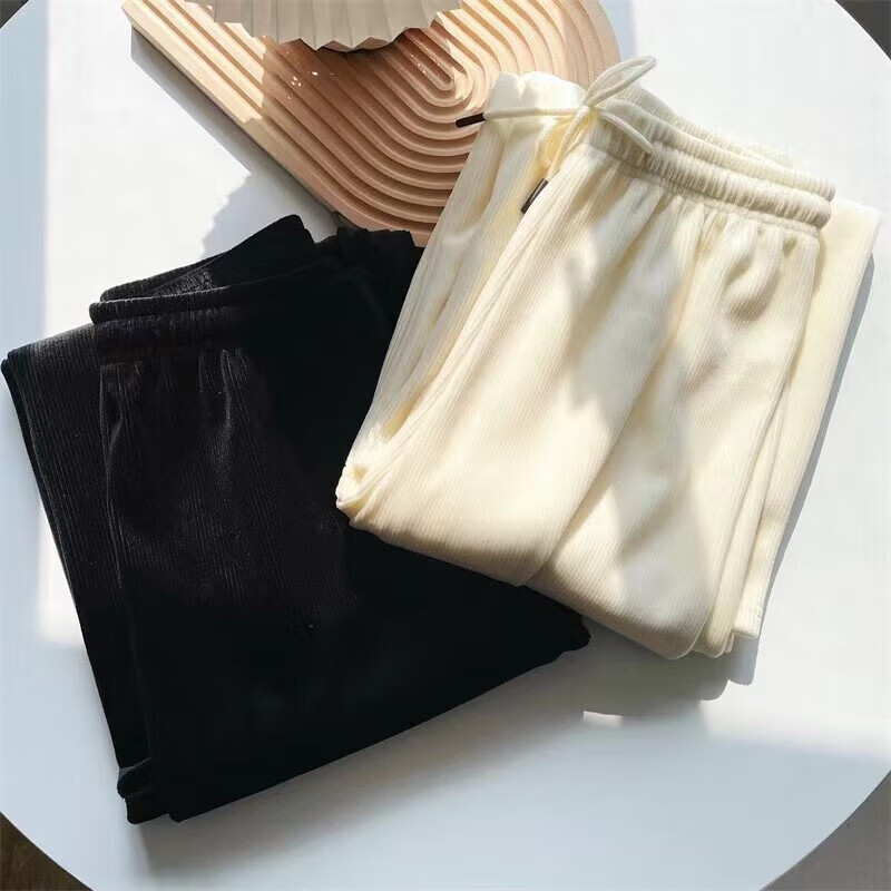 诗莉奥(SHILIAO)长裤骨纹阔腿家居裤气质高腰抽绳百搭显瘦百褶皱条纹垂感 春秋基础款-米白色 均码 【适合高155-175/臀75-100】