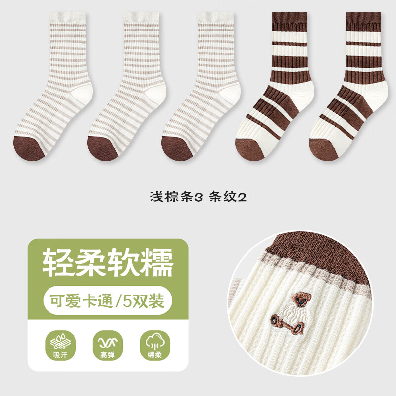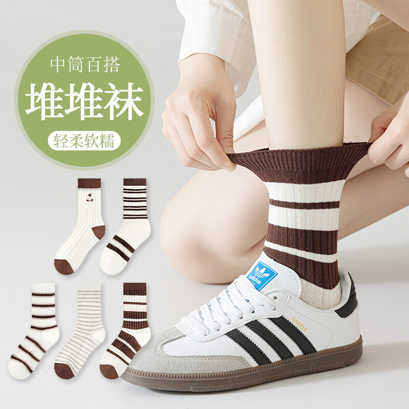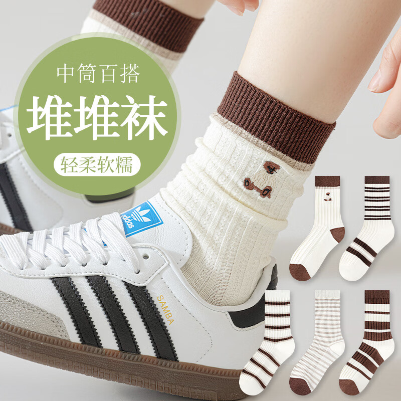 宜而爽秋冬季女中筒堆堆袜5双---------------------