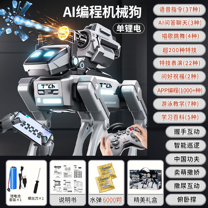 班迪萌(BANDIMENG)儿童玩具3-6-8-12岁男孩机器狗智能ai编程人生日礼物遥控汽车 AI握手智能机器狗+爆闪炮台 遥控车机械狗早教益智遥控机器人