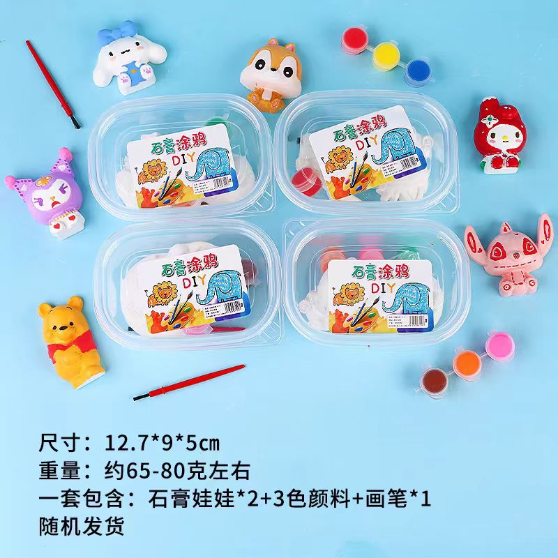 儿童涂色石膏娃娃创意手工玩具涂鸦diy填色批发摆地摊 每盒2个石膏娃娃+3色颜料+1画笔 1盒