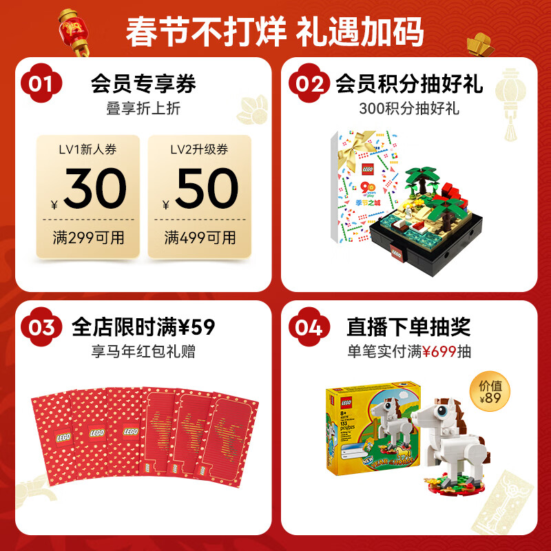 乐高(LEGO)积木 马年 拼装玩具 年货 新年装饰 情人节礼物 男孩女孩 80119骏马鸿图