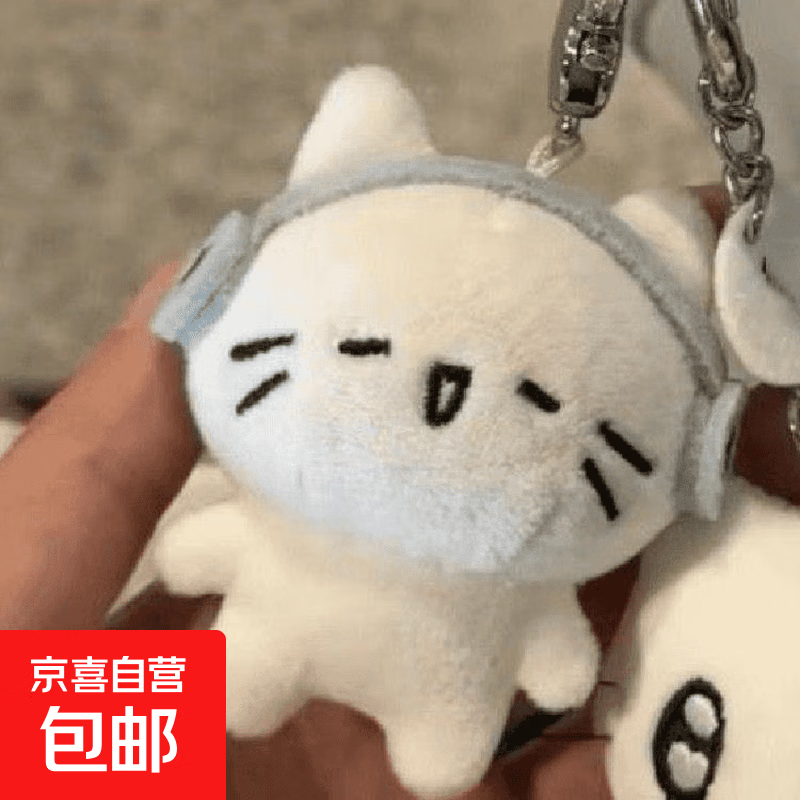 七夕礼物可爱耳机公仔卡通毛绒包包挂饰高颜值情侣钥匙扣白色猫 耳机猫 无规格