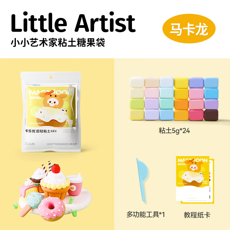 卡乐优(Coloyou)彩泥黏土橡皮泥儿童24色超轻粘土马卡龙色糖果袋开学必备无荧光剂