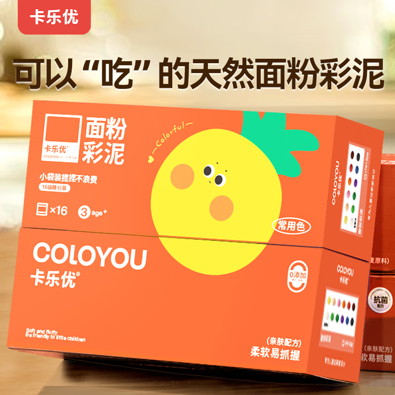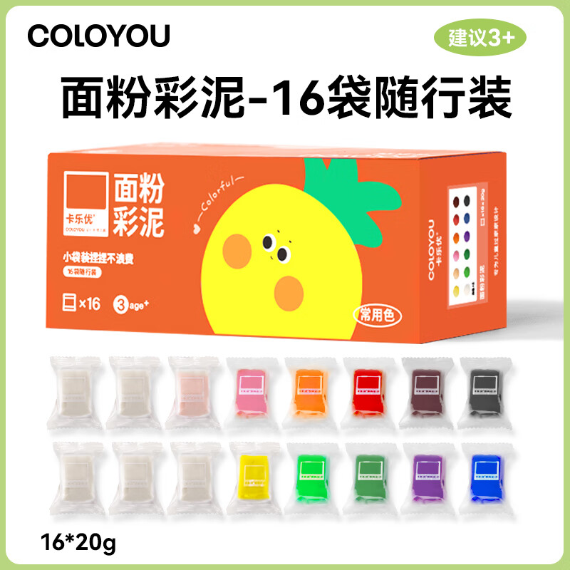 卡乐优(Coloyou)面粉彩泥16袋无毒儿童食品级面粉彩泥玩具超轻粘土幼儿园开学礼物