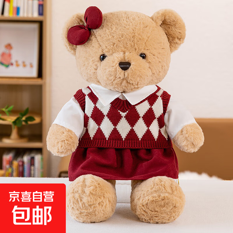 新款泰迪熊抱抱毛衣熊一对压床娃娃婚庆情侣公仔婚礼男女生日礼物 女款 75cm