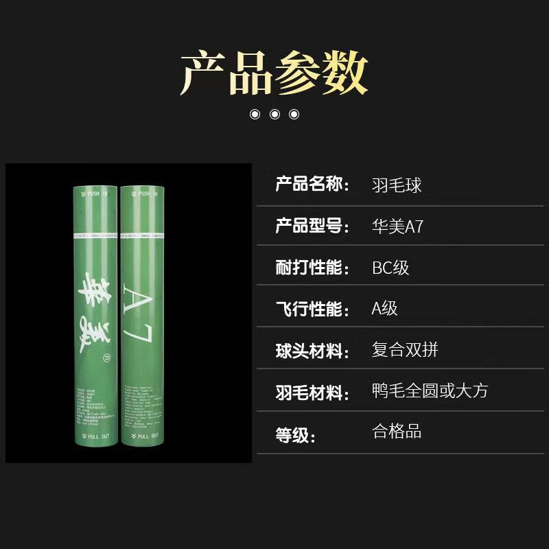 华美A7羽毛球业余训练比赛球飞行稳定正品 华美A7【77速】12只球 1筒