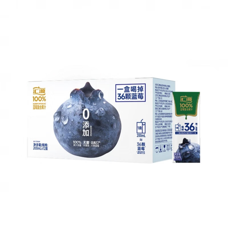汇源果汁杨梅汁蓝莓汁卡曼橘柠檬石榴汁夏日果饮休闲解渴饮料 【蓝莓复合果汁】200ml*12盒(现