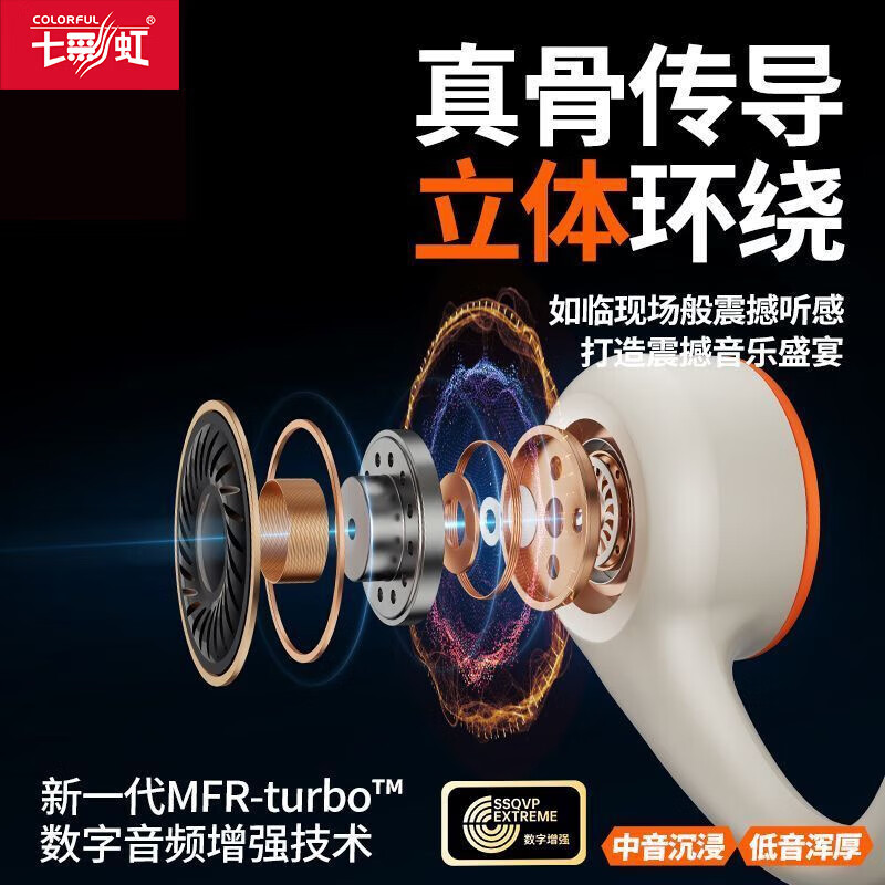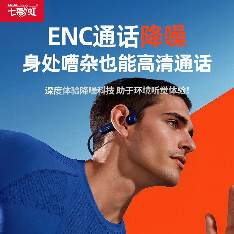 七彩虹(Colorful)七彩虹正品真骨传导蓝牙耳机校园运动防水超长续航无线耳麦适用华为小米苹果iPhone17礼物 蓝色