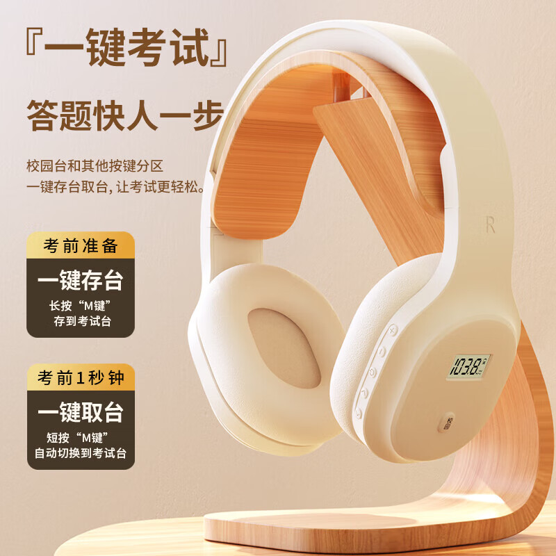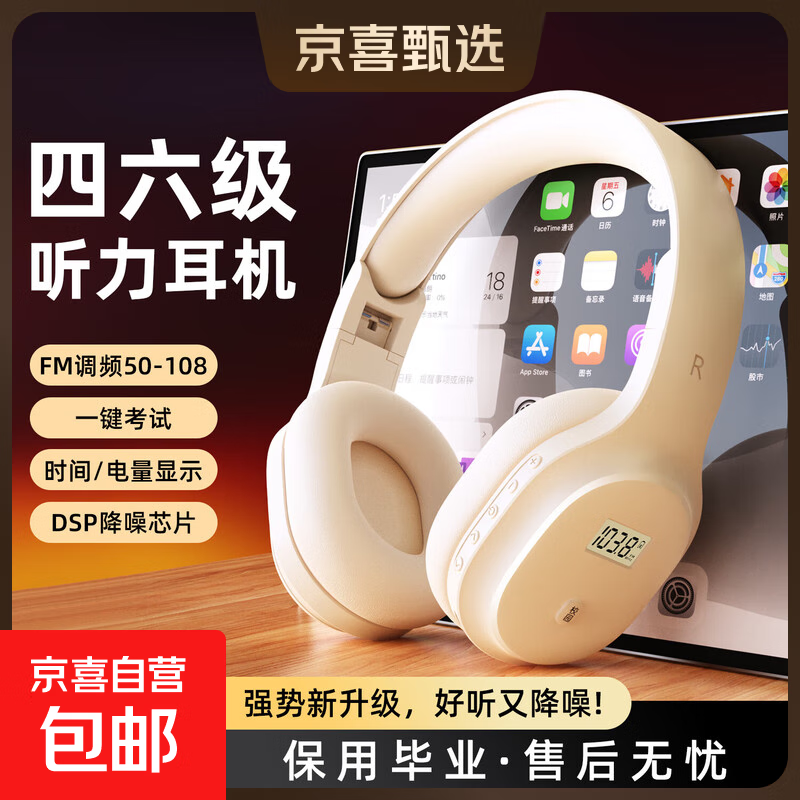 摩利奥四六级听力耳机考试英语四级专四专八FM调频46级头戴式运动游戏耳麦手机电脑通用校园广播考研有线 F1充电米白【FM调频】送充电线 无蓝牙|无红外|无音频线