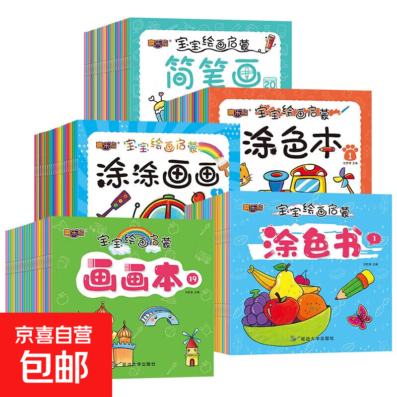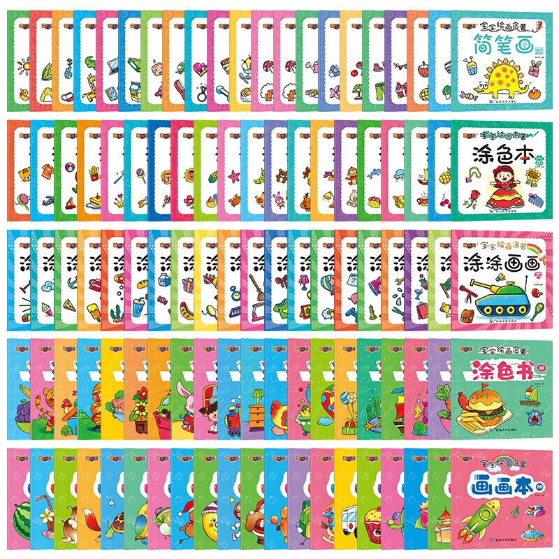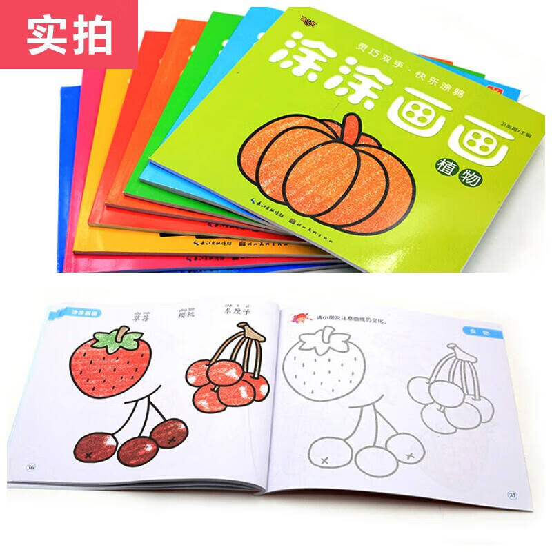 宝宝涂涂画画绘画启蒙涂色本宝宝涂色画简笔画2-3-6岁幼儿早教启蒙认知画画书涂色书 【加厚大本】2本随机发货