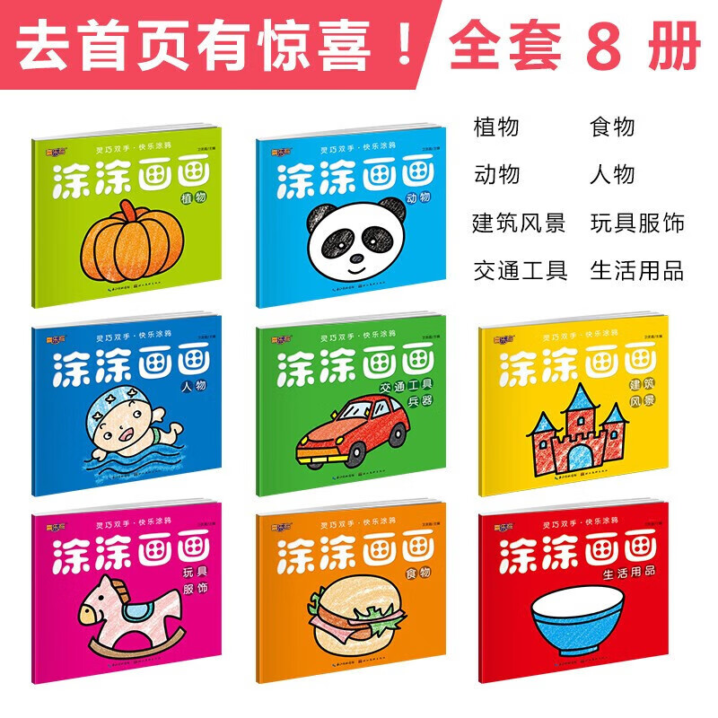 儿童绘画启蒙画画本 幼儿园早教绘画教材 2-3-6岁涂色书涂鸦书填色书 幼儿早教启蒙画画本涂色本简笔画案例素材 5本随机