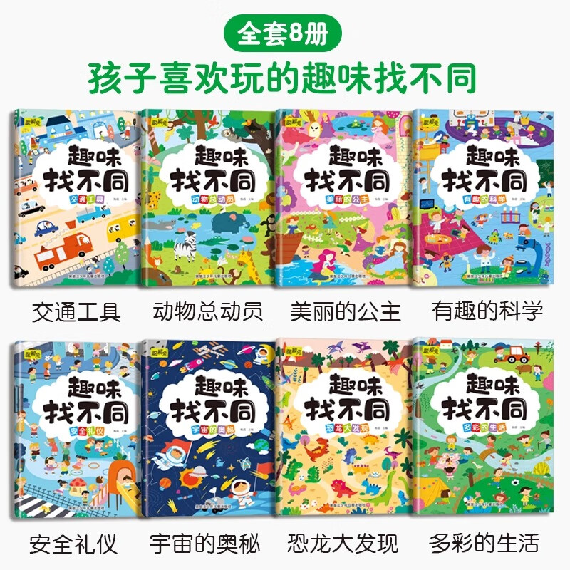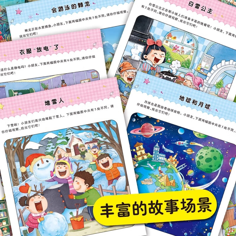 趣味找不同专注力训练儿童注意力训练数学思维逻辑找不同找茬游戏益智大脑开发书籍3-6-8岁以上幼儿园宝宝趣味找图案 【随机一本】趣味找不同