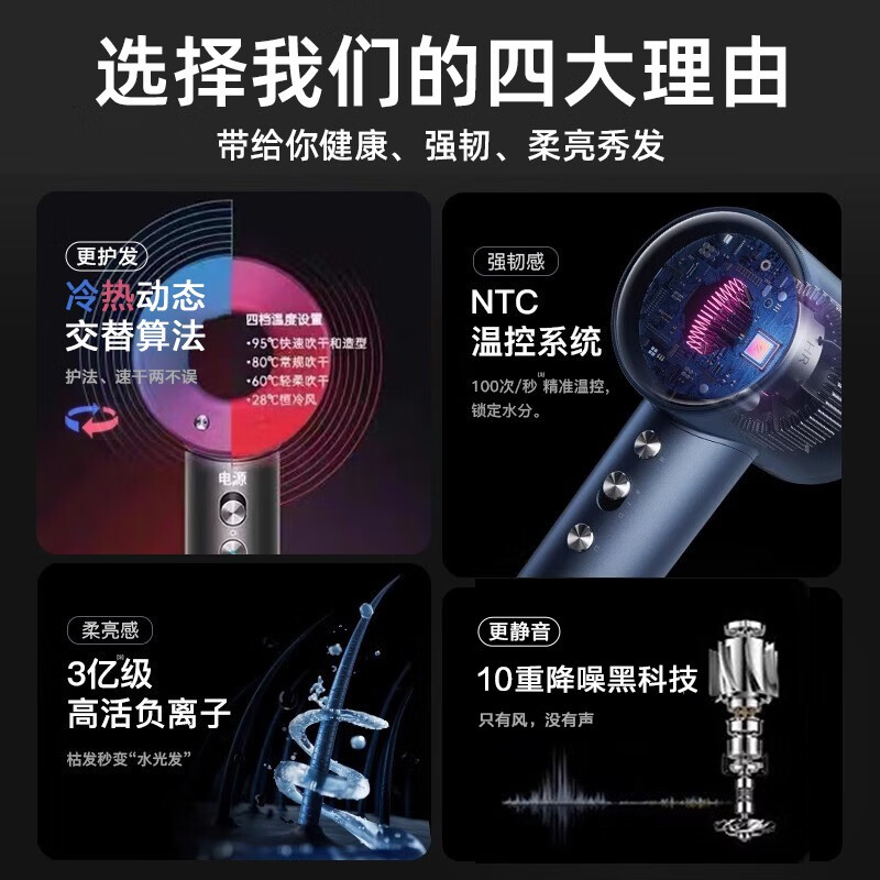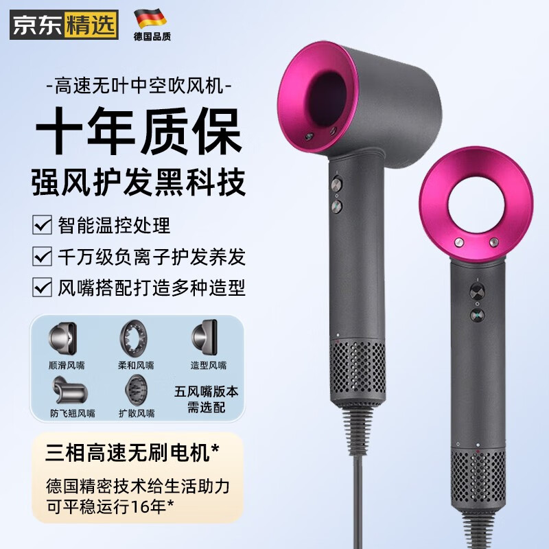 光速博士高速吹风机家用静音负离子大功率不伤发 无叶电吹风速干吹风筒 【玫瑰红-热卖款】上滑选择规格 1600W丨送单风嘴丨1.8米长