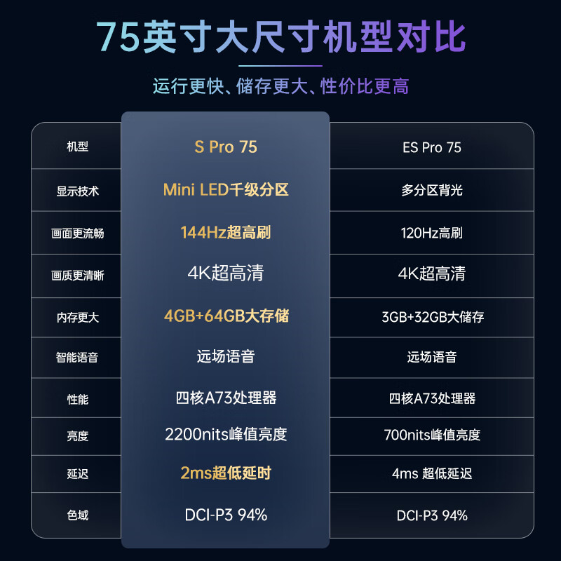 小米电视 S Pro 75英寸 Mini LED 2200nits 1152分区 4GB+64GB 家电国家补贴 液晶电视机L75MA-SM 75英寸