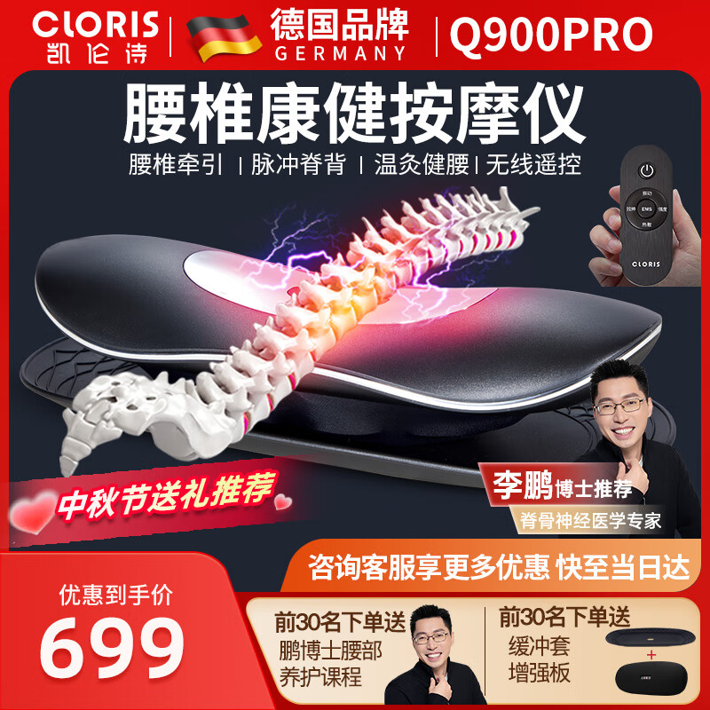 凯伦诗(CLORIS)【 鹏哥推荐】腰部按摩器腰肌劳损腰椎间盘突出坐骨神经腰疼脉冲牵引振动热敷仪送父母教师节礼物 【无线遥控款】脉冲理疗+牵引+热敷+震动+高度