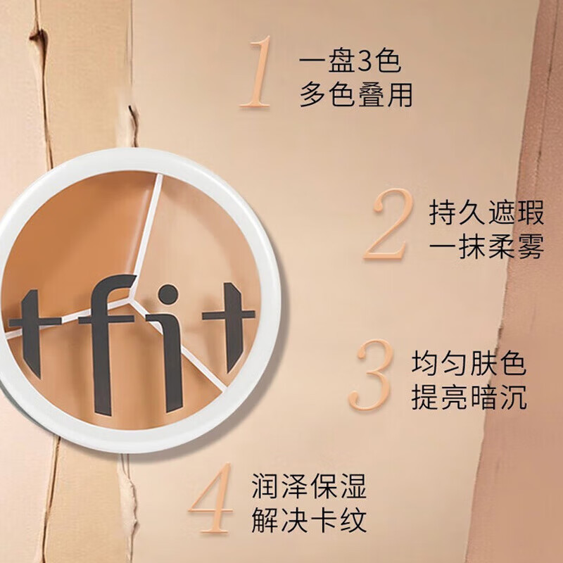 【官方正品】Tfit三色遮瑕膏遮瑕修容遮暇盘妆前打底提亮盘自然 一盒装