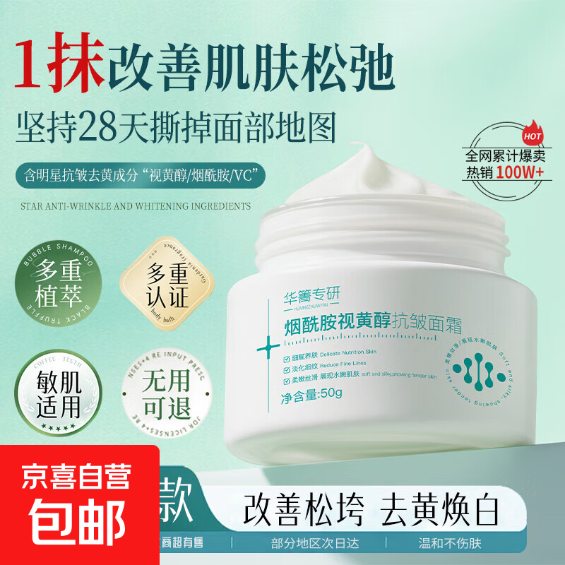 华箐专研烟酰胺视黄醇抗皱面霜A醇紧致提拉淡化细纹抗老保湿男女 1瓶