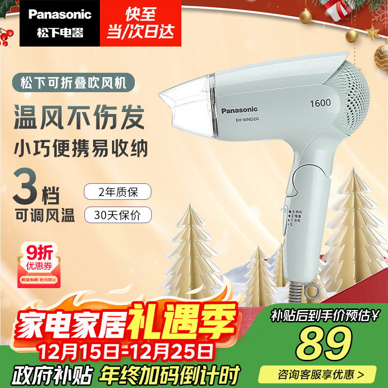 松下(Panasonic)【国家补贴】家用吹风机大功率速干迷你护发电吹风不伤发宿舍送女友新年圣诞礼物淡蓝色EH-WND2G