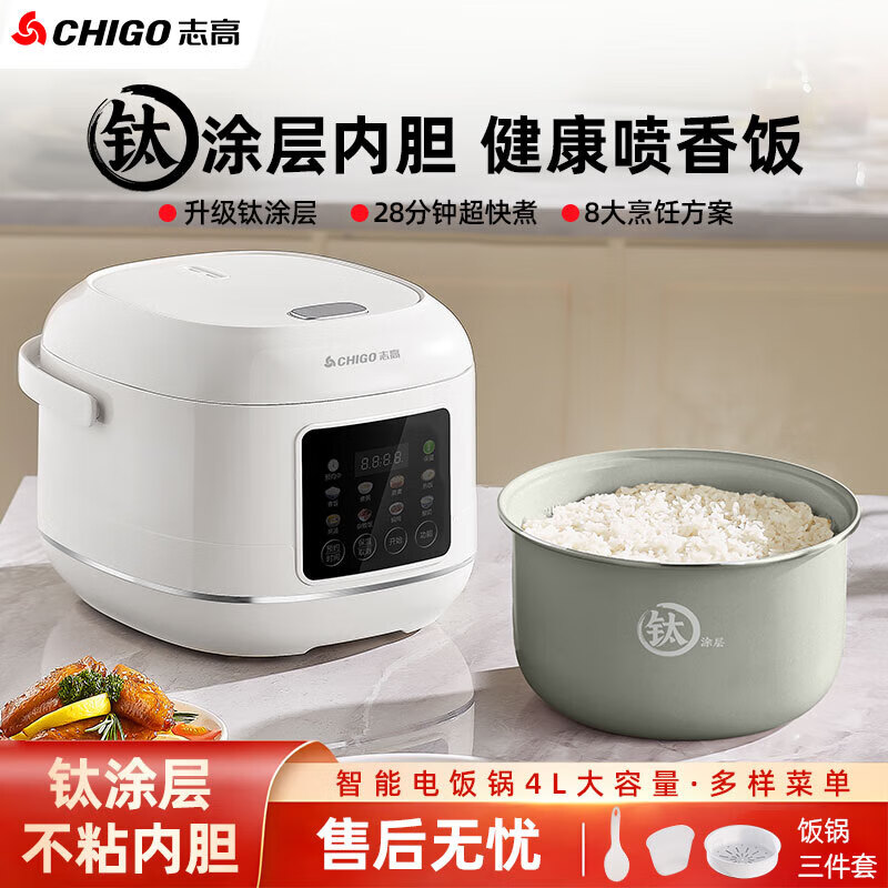 志高电饭煲家用多功能智能预约电饭锅钛涂层内胆不粘锅3-4人多功能煲汤煮粥蒸煮饭4升 4L 智能彩屏【钛涂层不粘内胆】3-6人