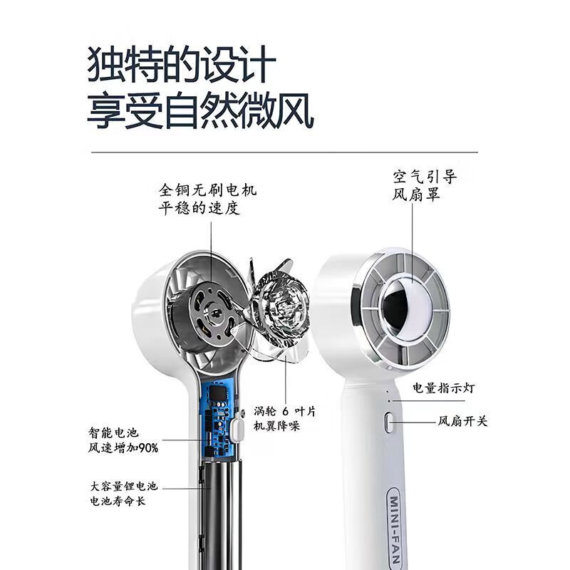霞炫【涡轮聚风】小风扇手持迷你小型随身便携式usb充电大风力办公室学生宿舍手拿儿童无叶轻音电风扇 高雅白丨高速节能丨三档劲风