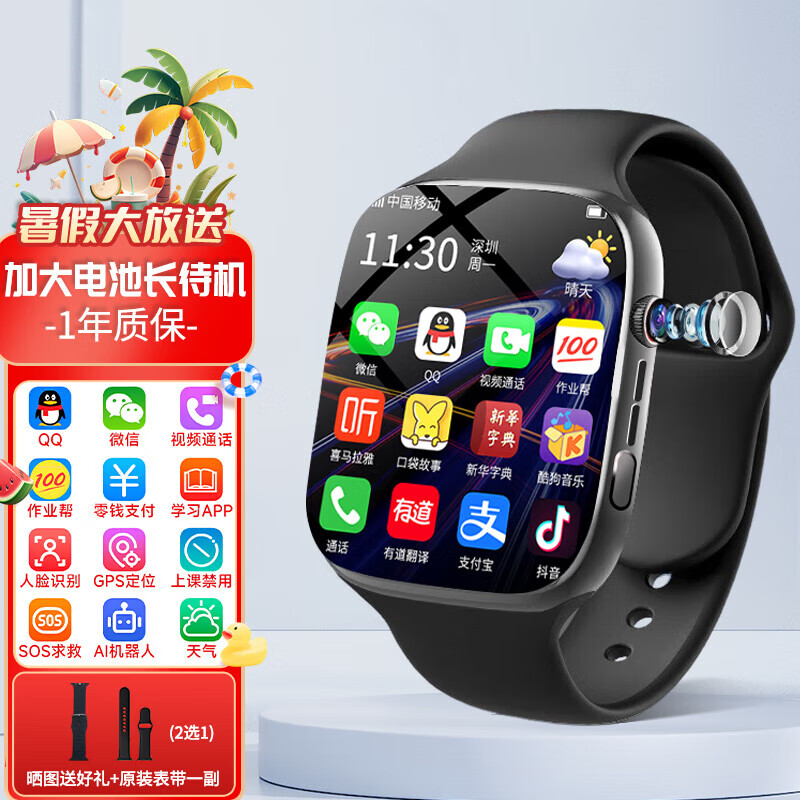 GTALEI华为机适用儿童电话手表高清5G卡全网通防水可插卡定位小学初高中生青少年男女孩智能手表小米机 至尊黑【续航升级+微信QQ+零钱支付+学习app】