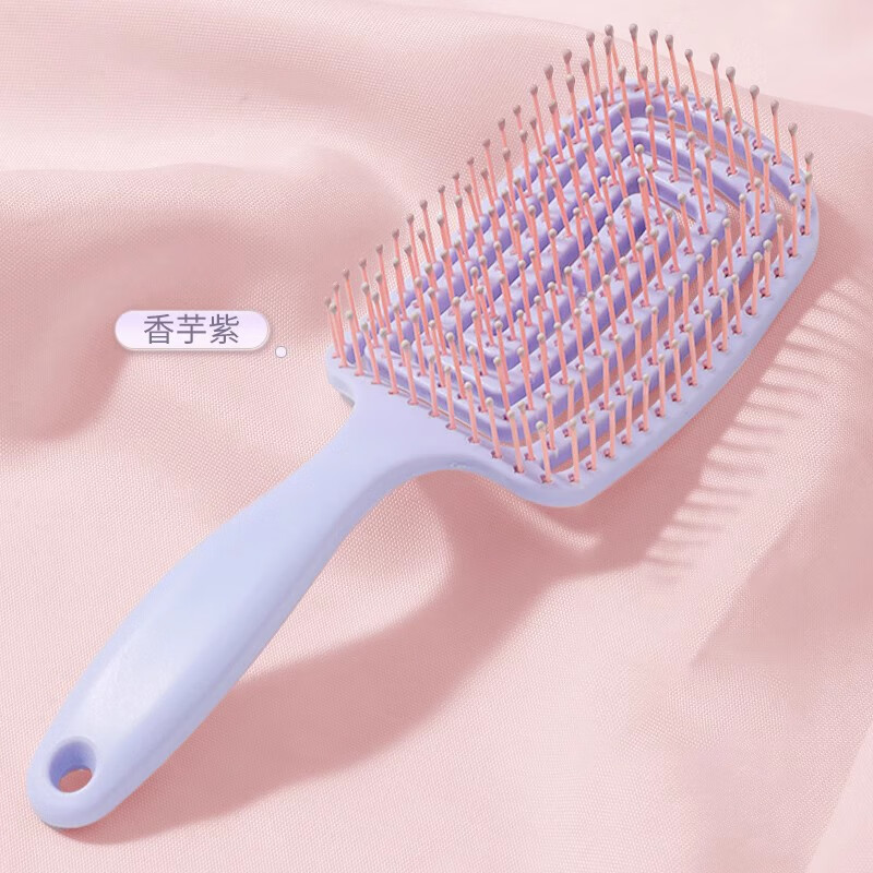 蓬松高颅顶梳子头发神器女士长发造型按摩大弯气囊排骨 香芋紫蓬松大弯梳