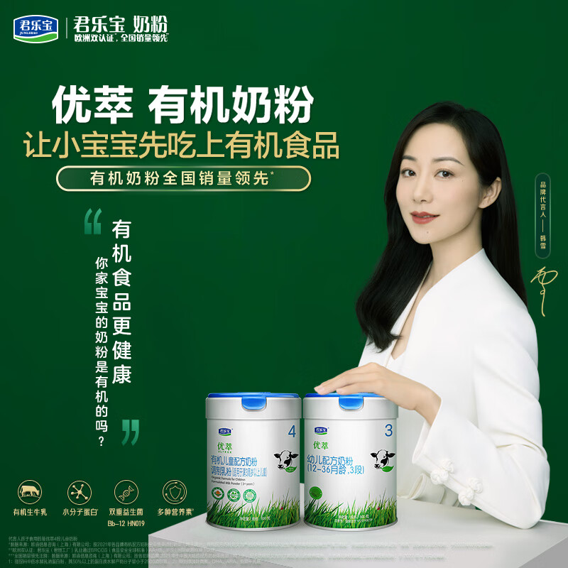商品: 君乐宝优萃有机4段儿童配方奶粉(3周岁以上)800g 双益生菌+小分子蛋白