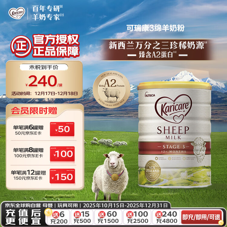 可瑞康(Karicare) 幼儿配方绵羊奶粉 3段(1-6岁) 900g 新西兰原装进口