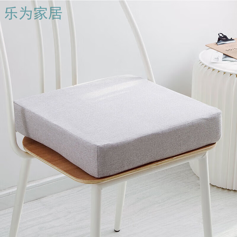 俏蕊可拆洗四季棉麻坐垫高密度加厚海绵坐垫办公室学生增高椅子垫子软 浅灰-方形 45x45厚5公分