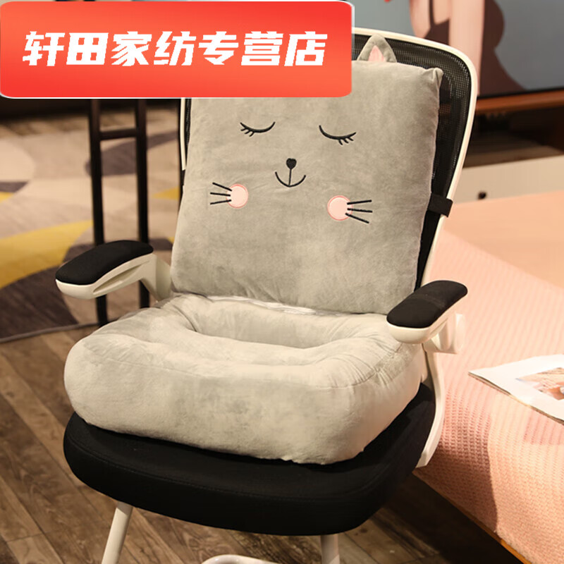 默然诺尔学生加厚增高椅子坐垫靠背一体屁垫教室办公室久坐座椅垫靠垫学车 加厚一体坐垫灰猫咪 加厚12厘米有绑带可以固定