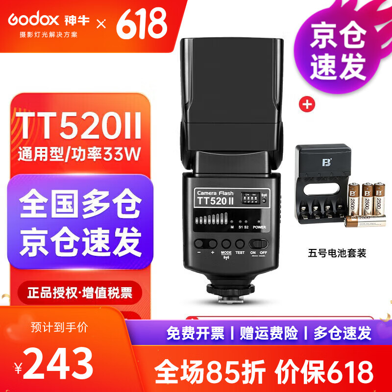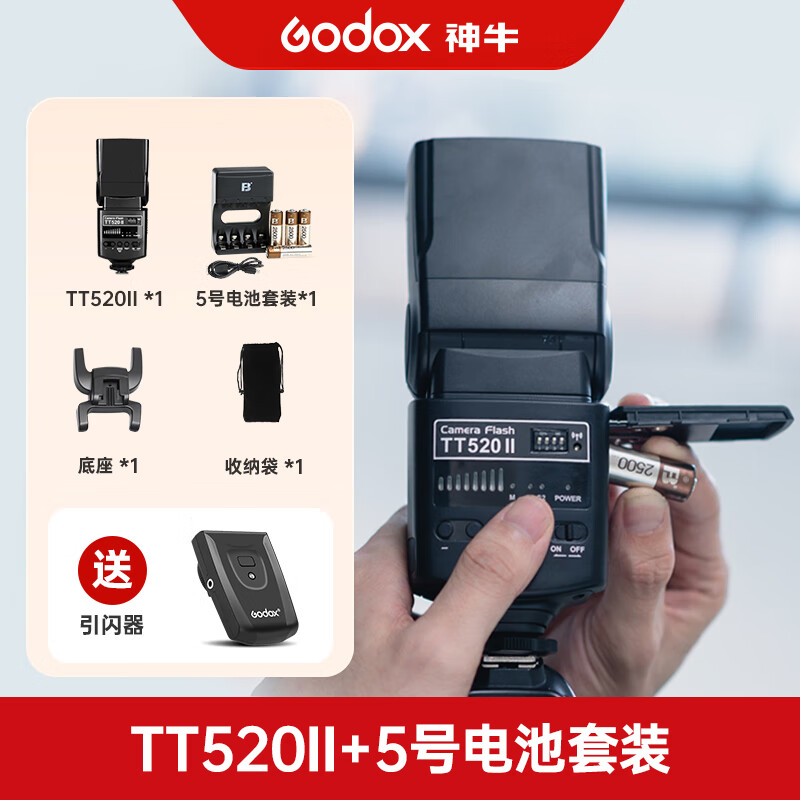 商品: 神牛TT520II二代机顶闪光灯单反相机通用型外置热靴灯户外补光摄影灯 TT520II标配+充电池套装