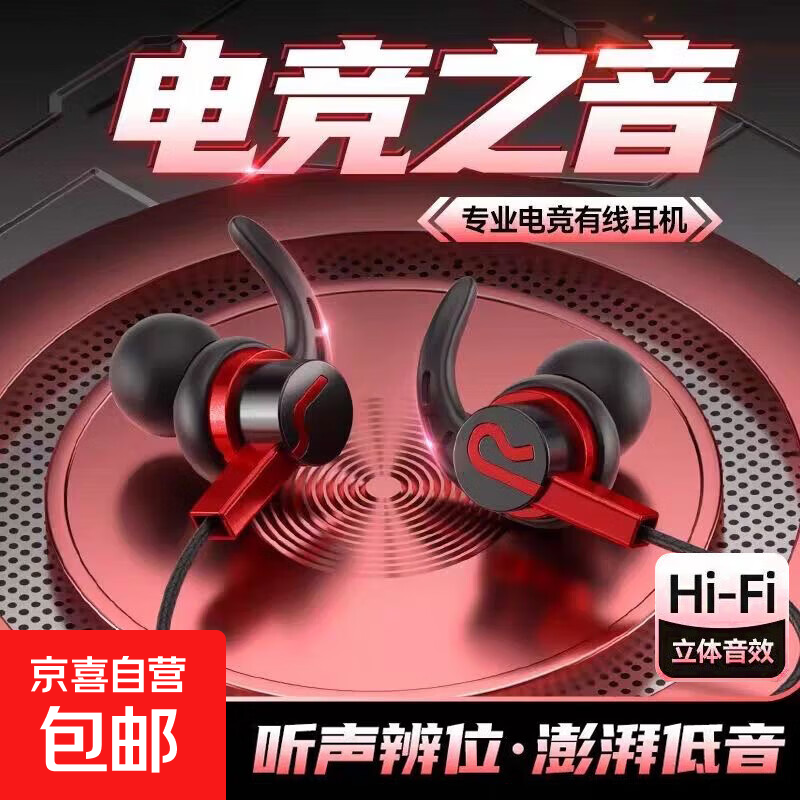 【热销万单】黑鲨类游戏有线耳机入耳式 电竞吃鸡手游听声辨位适用电脑苹果小米华为oppovivo 烈艳红-零感延迟 标配版⭐3.5mm圆头接口